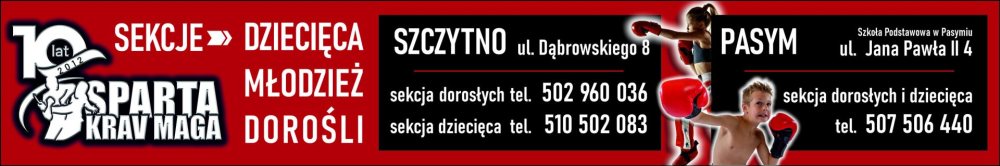 Od października krav magę będzie można trenować też w Pasymiu, w hali szkoły podstawowej przy ulicy Jana Pawła II. Zajęcia będą tam odbywały się we wtorki i czwartki – dzieci godz. 17, a dorośli godz. 18. Tu zapisać będzie można się pod numerem telefonu 507 506 440.