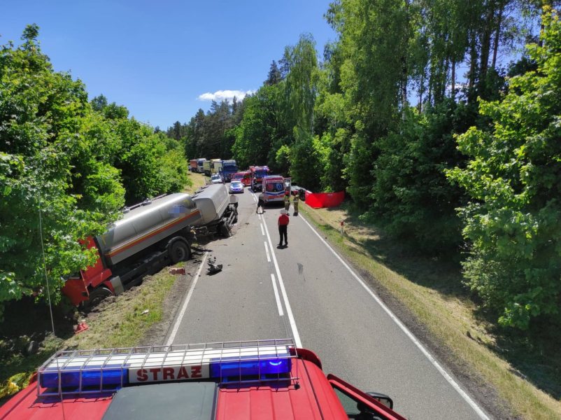 Śmiertelny wypadek pod Kucborkiem (gmina Wielbark). Zderzyły się tam trzy auta - dwa osobowe i cysterna przewożąca mleko. Na miejscu zginął 28-letni kierowca audi, mieszkaniec naszego powiatu.