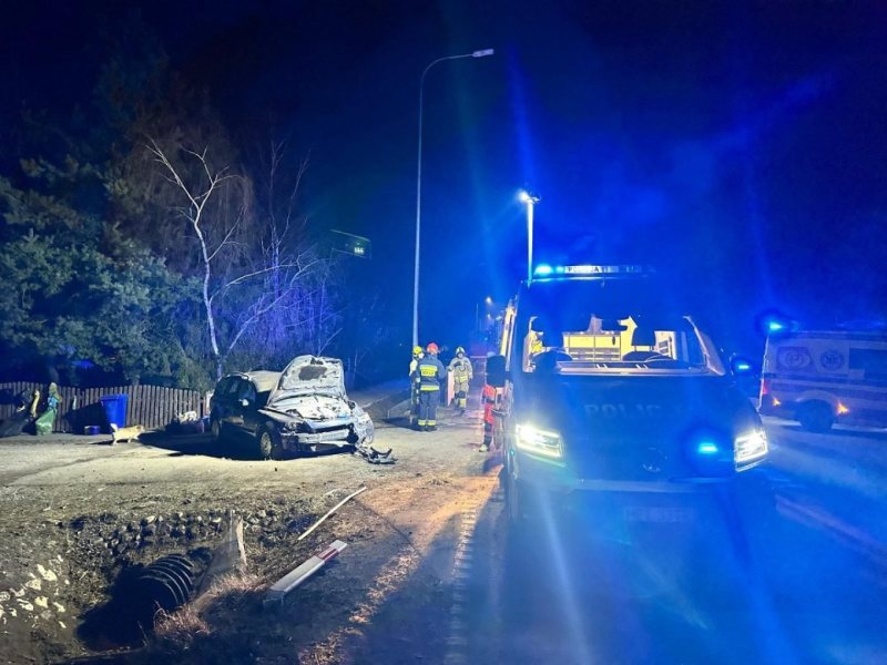Wielbark: kierowca uderzył w słup i przepust drogowy