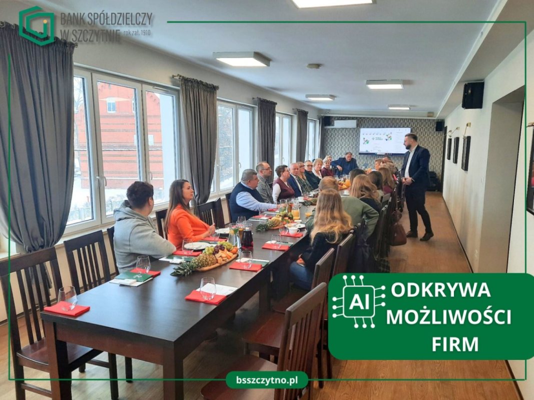 Sztuczna inteligencja przestała być tematem zarezerwowanym dla korporacji. Bank Spółdzielczy w Szczytnie zorganizował kolejne spotkanie z cyklu „Pierwsza Liga Biznesu”, tym razem poświęcone wykorzystaniu AI w sektorze małych i średnich firm. W sali zasiedli lokalni przedsiębiorcy, którzy chcą wiedzieć, jak technologia wpływa na codzienne prowadzenie biznesu – tu i teraz.