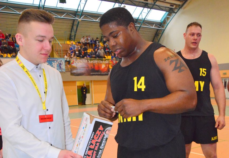 - Ale tak naprawdę zebrała się ekipa wyjątkowych ludzi, którzy chcieli pomóc Wioli i przy okazji miło spędzić czas – mówi Arkadiusz Leska, dyrektor Miejskiego Ośrodka Sportu w Szczytnie, który odpowiadał za koszykarski pojedynek. - I tak naprawdę nie liczył się wynik pojedynku, a fakt że można komuś pomóc uratować życie. Zarówno Amerykańscy żołnierze, jak i zawodnicy, którzy reprezentowali Szczytno wrzucili sporą kwotę do puszki na rzecz Wioli.