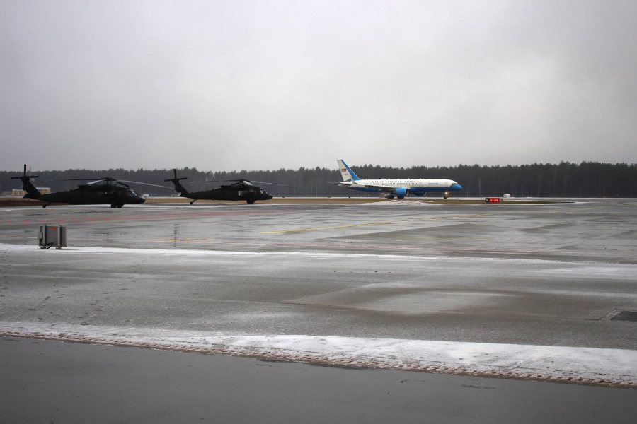 W środę, 13 lutego tuż po godzinie 10.00 na lotnisku w Szymanach lądował Boeing 757-200 Sił Powietrznych Stanów Zjednoczonych. Przywiózł sekretarza stanu USA. Mike Pompeo odwiedził amerykańskich żołnierzy w Bemowie Piskim i po 15.00. odleciał do Warszawy.