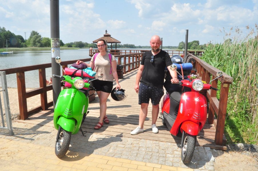 Zarówno pani Asia, jak i pan Dawid to mieszkańcy naszego regionu, choć ostatnio przycumowali w Gdańsku. - Studia, praca sprawiły, że tam zamieszkaliśmy – mówią. - Mazury to nasze dzieciństwo, ale tak naprawdę nigdy nie było okazji ich zwiedzić. W Szczytnie jesteśmy po raz pierwszy, bo tu odbieraliśmy nasze skutery z magazynu firmy Novum. Przepiękne miasteczko, cudowna plaża, jeziora, ruiny zamku. Robi to fajny klimat. Chcielibyśmy zostać na dłużej, ale czas w drogę...