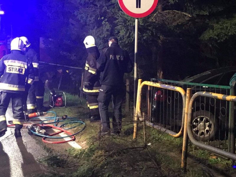 Z ustaleń policji wynika, że 41-latek był pijany. Samochód, którym jechał wypadł z drogi, staranował ogrodzenie i zatrzymał się na ścianie budynku dawnej szkoły podstawowej w Tylkowie.