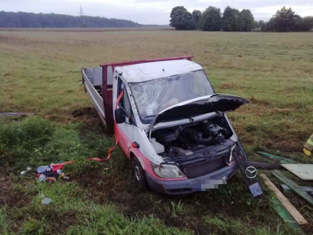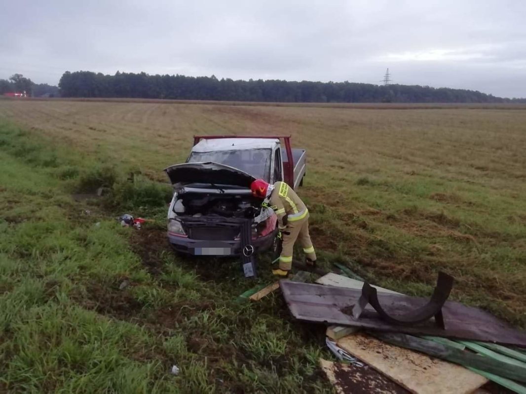 Mercedes sprinter wypadł z drogi i wpadł do rowu, potem przewrócił się na bok. Za kierownicą samochodu siedział 81-letni mężczyzna.