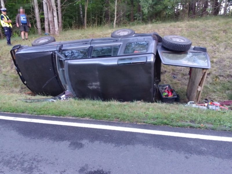 Z ustaleń policjantów obecnych na miejscu zdarzenia wynika, że 70-letni mieszkaniec województwa mazowieckiego kierujący autem terenowym, do którego podczepiona była przyczepka, stracił panowanie nad swoim samochodem i na łuku jezdni zjechał do pobliskiego rowu. Auto przewróciło się na bok.