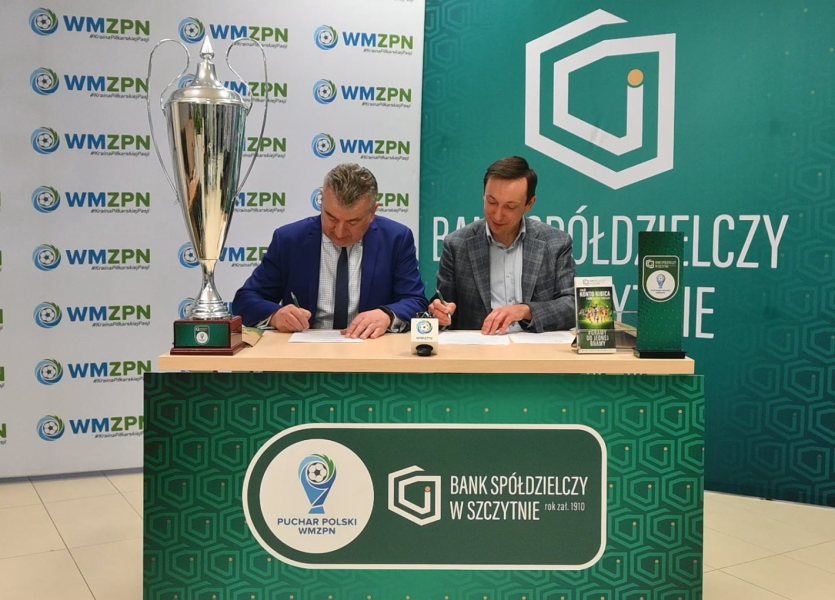 Historyczna chwila. Bank Spółdzielczy w Szczytnie został sponsorem tytularnym Wojewódzkiego Pucharu Polski! Właśnie została podpisana umowa z Warmińsko-Mazurskim Związkiem Piłki Nożnej w Olsztynie. Umowę parafowano w olsztyńskim oddziale Banku Spółdzielczego w Szczytnie. Podpisali ją prezes banku Krzysztof Karwowski oraz prezes związku Marek Łukiewski.