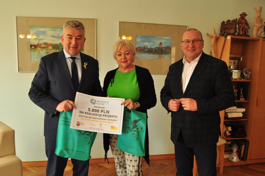 Bank Spółdzielczy w Szczytnie przekazał czek na 5 tys. zł na program „Szczytno bez wad postawy i otyłości”. W ramach programu przebadano już niemal 100 uczniów klas pierwszych szkół podstawowych. - 90 procent z nich niestety ma różnego rodzaju wady postawy – mówi Mirosława Duńczyk, dyrektor Centrum Rehabilitacyjno-Edukacyjnego im. Jana Pawła II w Szczytnie. Miedzy innymi specjaliści z tej placówki badają szczycieńskich uczniów. - Szybka diagnoza i rehabilitacja to szansa na dorosłe życie bez bólu – dodaje.