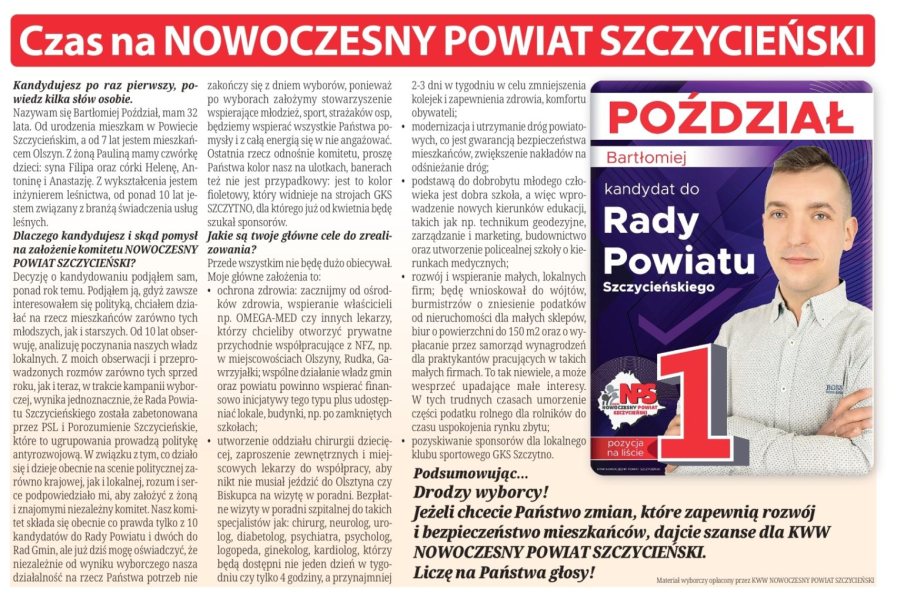 Materiał wyborczy opłacony przez KWW NOWOCZESNY POWIAT SZCZYCIEŃSKI