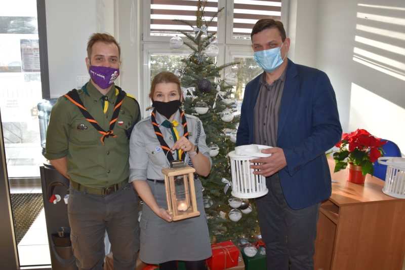 Do Urzędu Gminy Szczytno dotarło Betlejemskie Światło Pokoju. To ogień, który za pośrednictwem harcerzy ZHP do naszego kraju dotarł już po raz 31. Gminie Szczytno przekazali je druhowie Beata Piwowarska i Rafał Bałdyga.