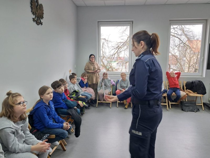 Policjantki - st. sierż. Joanna Manelska oraz sierż. Emilia Pławska, podczas wizyty dyskutowały z uczniami o zasadach bezpieczeństwa w życiu codziennym, a dzieci miały okazję przypomnieć sobie ulubione historie o Poli, bohaterce popularnej książki.