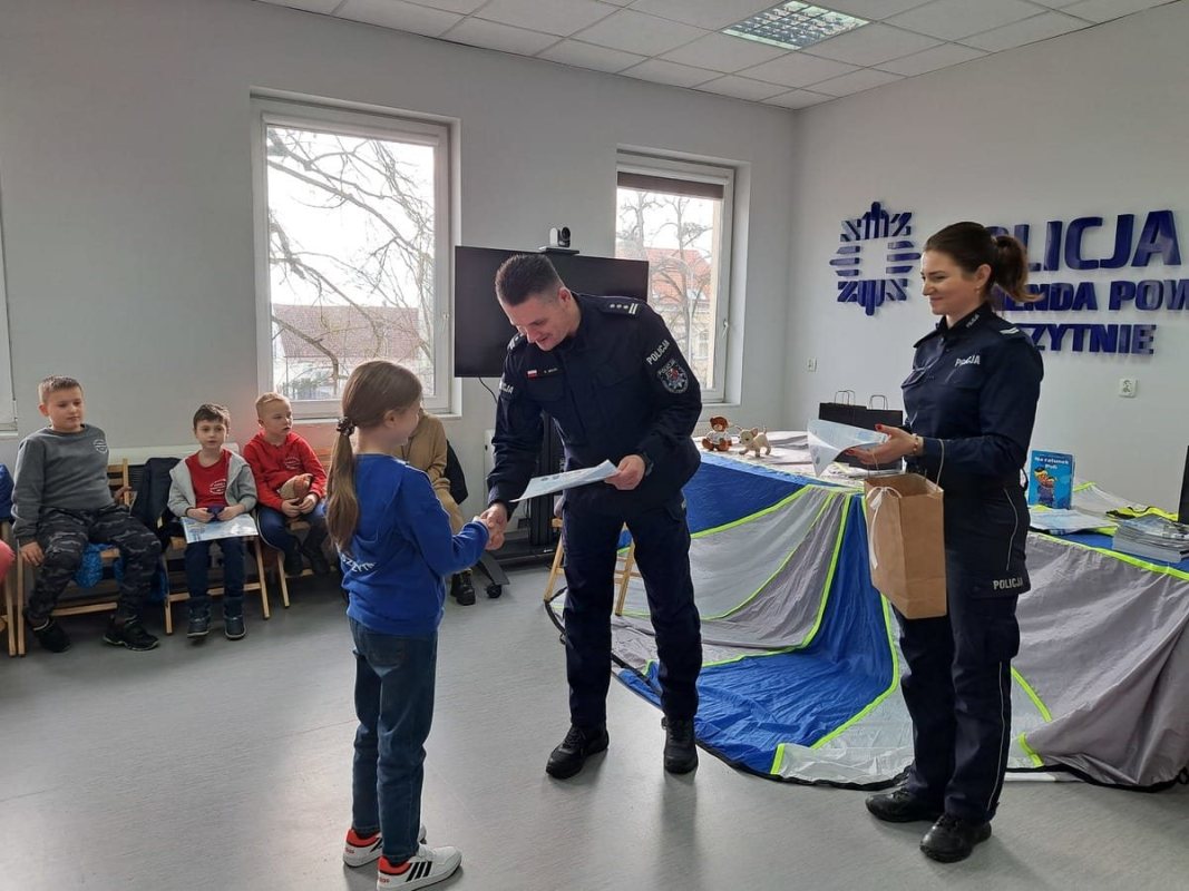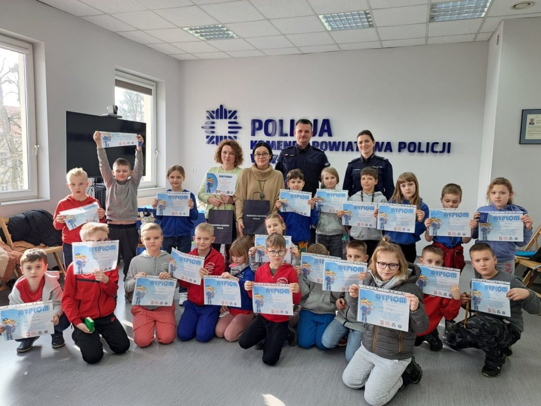 W czwartek uczniowie z klasy 2a ze Sportowej Szkoły Podstawowej nr 4 im. Polskich Olimpijczyków w Szczytnie wraz z nauczycielkami gościli w Komendzie Powiatowej Policji w Szczytnie. Była to forma zakończenia wojewódzkiego projektu "Profilaktyka Smyka", skierowanego na rzecz bezpieczeństwa dzieci.