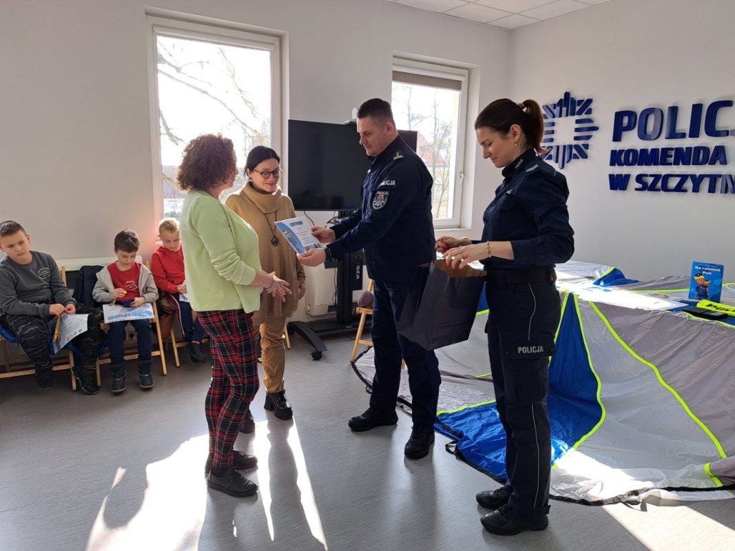 Na zakończenie spotkania, Komendant Powiatowy Policji w Szczytnie, insp. Radosław Drach, wręczył uczniom dyplomy ukończenia projektu profilaktycznego, gratulując im wiedzy i świadomości na temat potencjalnych zagrożeń w życiu codziennym.