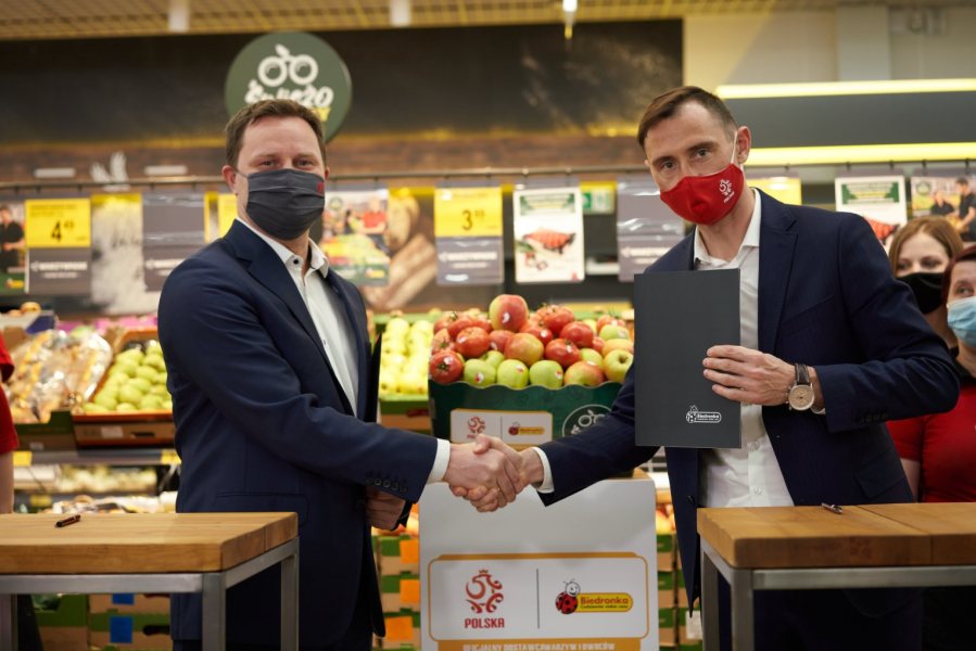 Aneks do umowy sponsorskiej między Biedronką a PZPN podpisano w jednym z najnowocześniejszych sklepów sieci w towarzystwie Świeżoznawców – ekspertów Biedronki od warzyw i owoców.