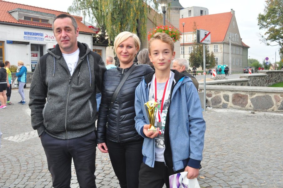Damian Roszko (4F Szczytno) (w środku) wygrał tegoroczny Szczycieński Bieg niepodległości.