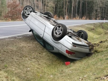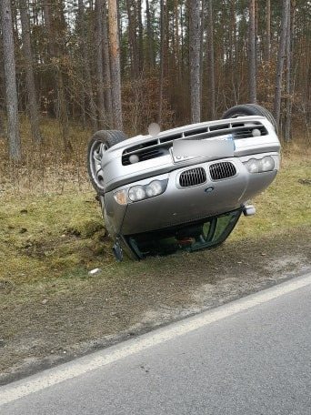Napisali do nas: Na trasie Szczytno – Pasym dachowało bmw. Autem kierował młody mężczyzna. Na szczęście poważniej nie ucierpiał.