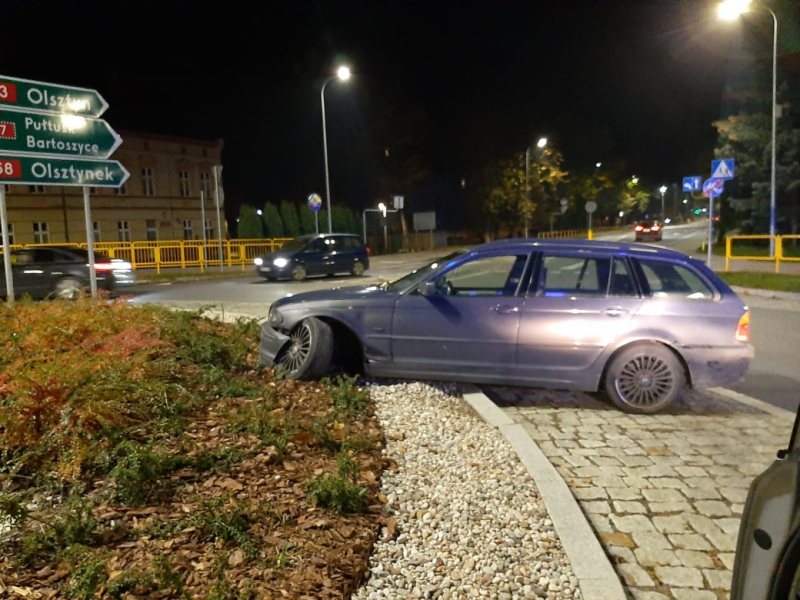 Kolejna niebezpieczna kolizja na ulicach Szczytna. Rozpędzone bmw, za kierownicą którego siedział pijany 23-latek wpadło w poślizg i dosłownie wbiło się w rondo na skrzyżowaniu ulic: Leyka, Piłsudskiego, Wileńskiej i Polskiej. Ratownicy mówią wprost, gdyby ktoś szedł po pasach bądź bmw uderzyłoby w jakiś samochód mogłoby dojść do ogromnej tragedii.