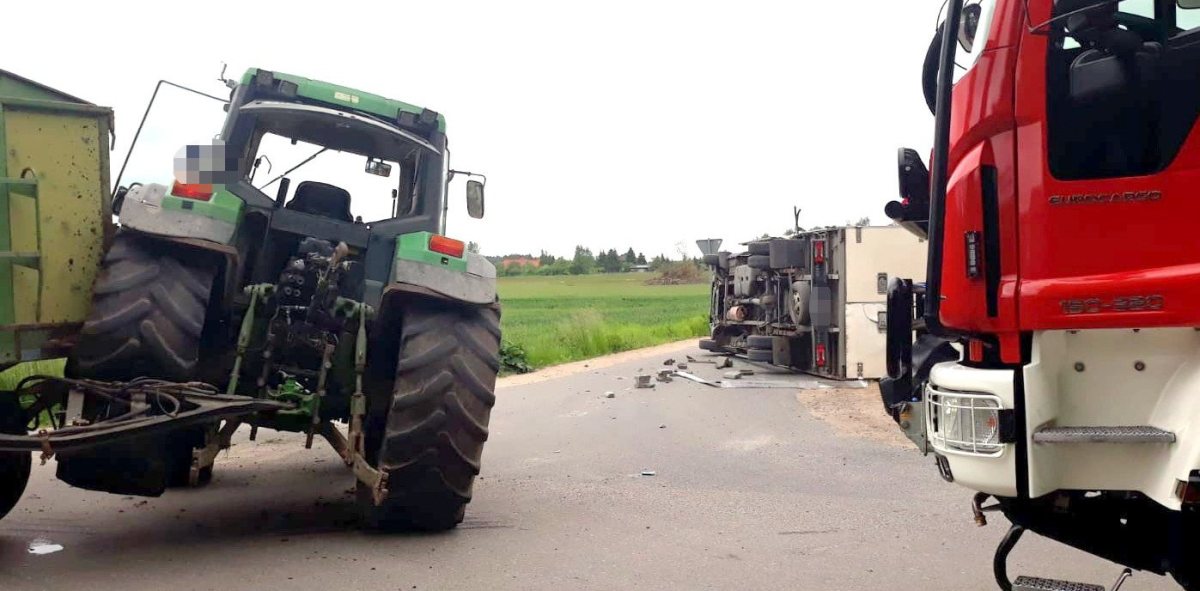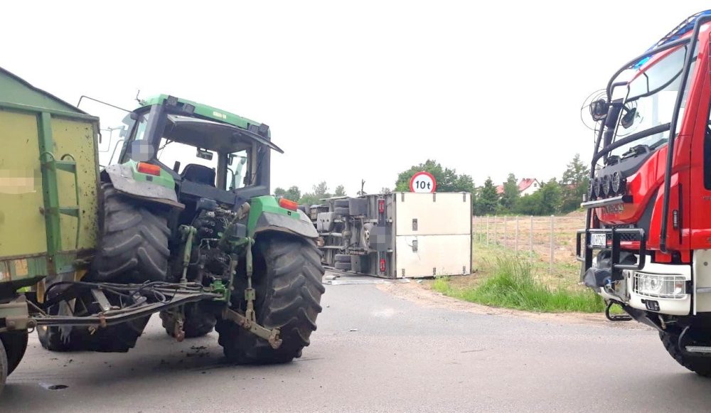 Ciężarówka zderzyła się z ciągnikiem rolniczym w okolicach Leśnego Dworu. Pojazdy całkowicie zablokowały lokalne skrzyżowanie. Na szczęście nikt nie ucierpiał.