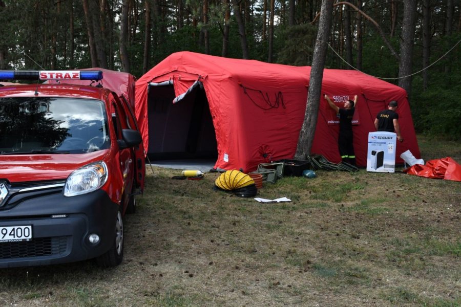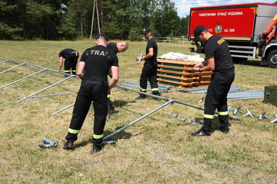 Ukończono budowę obozowiska organizatorów, a także powstaje stanowisko sztabowe. Jutro od wczesnych godzin porannych do punktu koncentracji w miejscowości Głuch w pow. szczycieńskim przybywać będą siły i środki Państwowej Straży Pożarnej z województw: warmińsko-mazurskiego, pomorskiego, zachodniopomorskiego i kujawsko-pomorskiego.