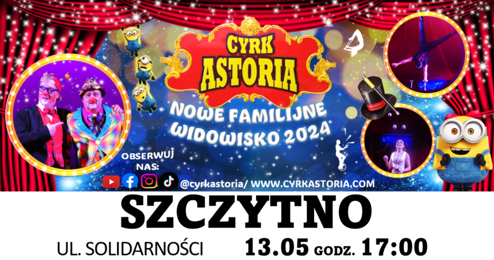 Już w poniedziałek, 13 maja w Szczytnie zagości CYRK ASTORIA. W programie m.in. wirtuoz diabolo, młoda mistrzyni żonglerki, szalony pianista.....