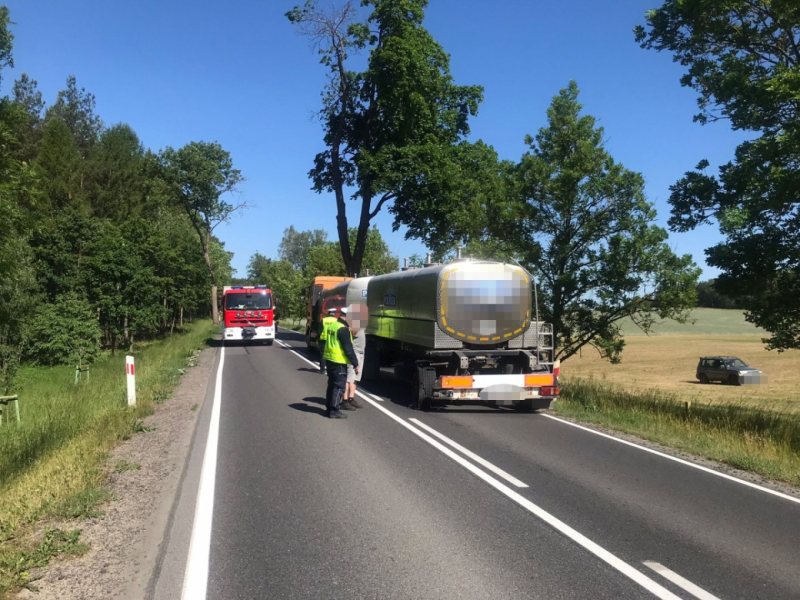 Na miejscu działali strażacy, którzy wydostali kobietę z pojazdu. Renault espace został zniszczony całkowicie. Ciężarówka miła uszkodzone koło przyczepy oraz tylną lampę. Kierowcy obu pojazdów nie doznali żadnych obrażeń.