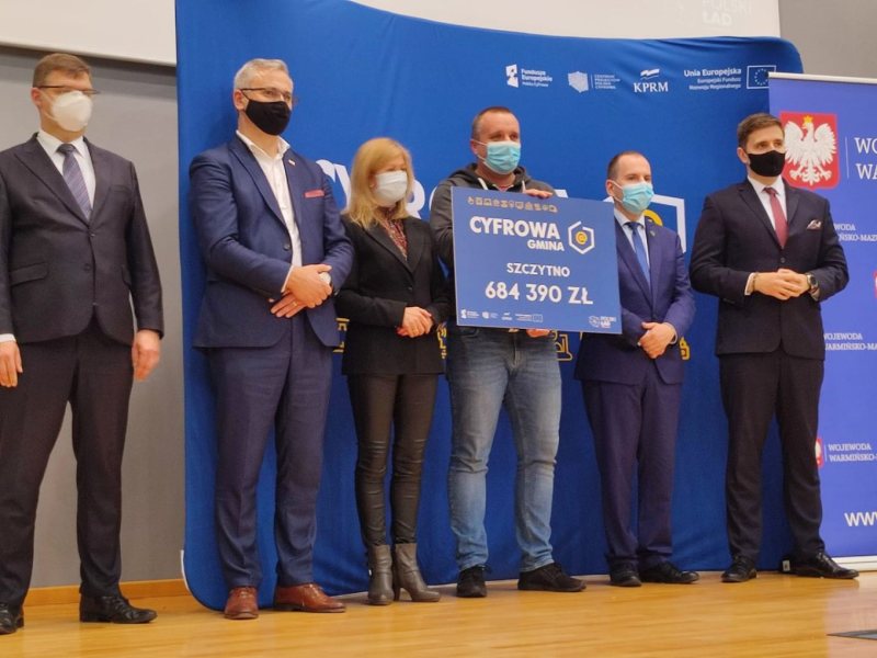 Gmina Rozogi otrzymał plastikowy czek na 164 tys. zł z ministerstwa cyfryzacji w ramach ogólnopolskiego programu „Cyfrowa Gmina”.