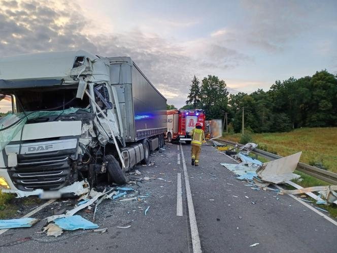 Według wstępnych ustaleń policji kierowcy obu ciężarówek są ranni. Obaj trafili do szpitala. Jeden był zakleszczany w pojeździe. Interweniowali strażacy, którzy przy pomocy sprzętu ratownictwa drogowego wyciągnęli go z pojazdu.