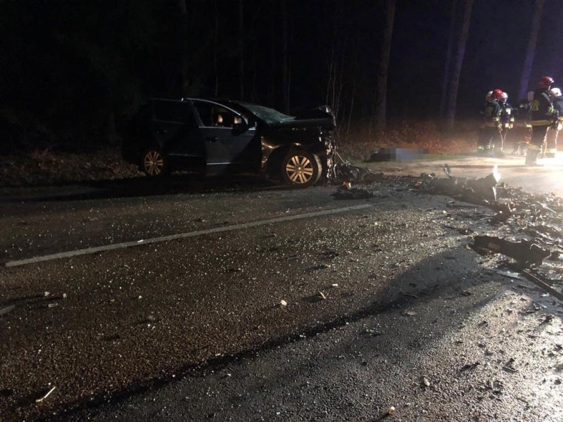 Do tragicznego wypadku doszło dziś w okolicach wsi Kot (gmina Jedwabno), trasa Jedwabno-Nidzica. Zderzyły się czołowo hyundai i volkswagen. W wypadku zginęli dwaj kierowcy - 27-latek i 43-latek. Na miejscu pracują policjanci, technicy i prokurator. Ruch na drodze jest całkowicie zablokowany.
