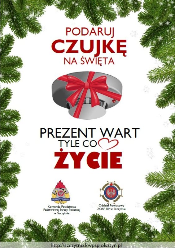 Szczycieńscy strażacy – zawodowi, jak i ochotnicy – nie mają wątpliwości: najlepszym prezentem pod choinkę jest czujka, urządzenie ostrzegające przed trującym czadem i dymem oznaczającym pożar.