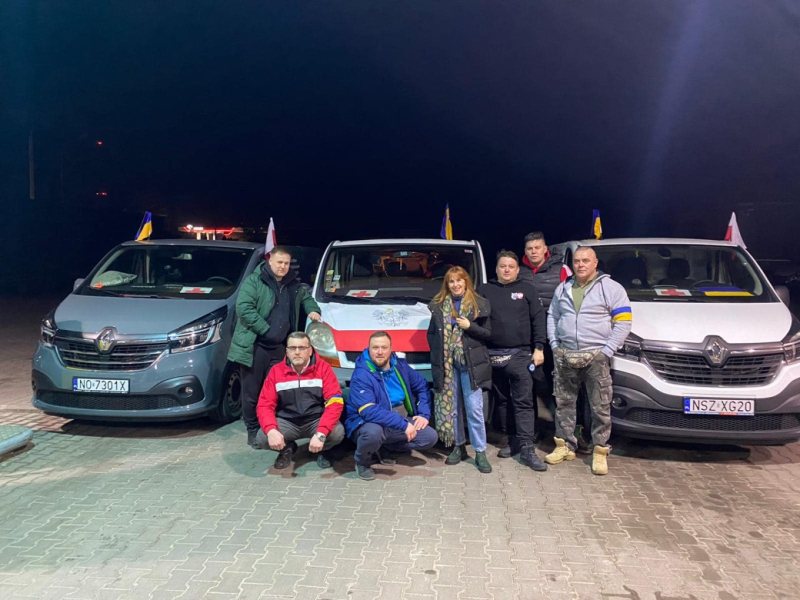Dokładnie o północy z wtorku na środę. Na przejściu granicznym w Dołhobyczynie byliśmy już o 7 rano. Tam zostaliśmy odprawieni i sprawdzeni przez polską straż graniczną. Nie było żadnych problemów. Szybka odprawa. Sprawdzono, czy my to my i co przewozimy. I tyle. Oczywiście nasz transport był wcześniej zgłoszony. Nasze trzy busy z darami przejechały do strefy pomiędzy polską, a ukraińską granicą. Tam bezpiecznie czekaliśmy na naszych przyjaciół ze Lwowa, dla których cały nasz transport był przeznaczony. Odebrali go i pojechali. My z kolei z granicy wzięliśmy jeszcze 7 osób z Ukrainy, dwie matki i pięcioro dzieci oraz kota. Pomogliśmy im dotrzeć do ich przyjaciół w Warszawie.