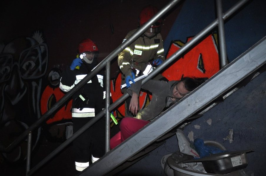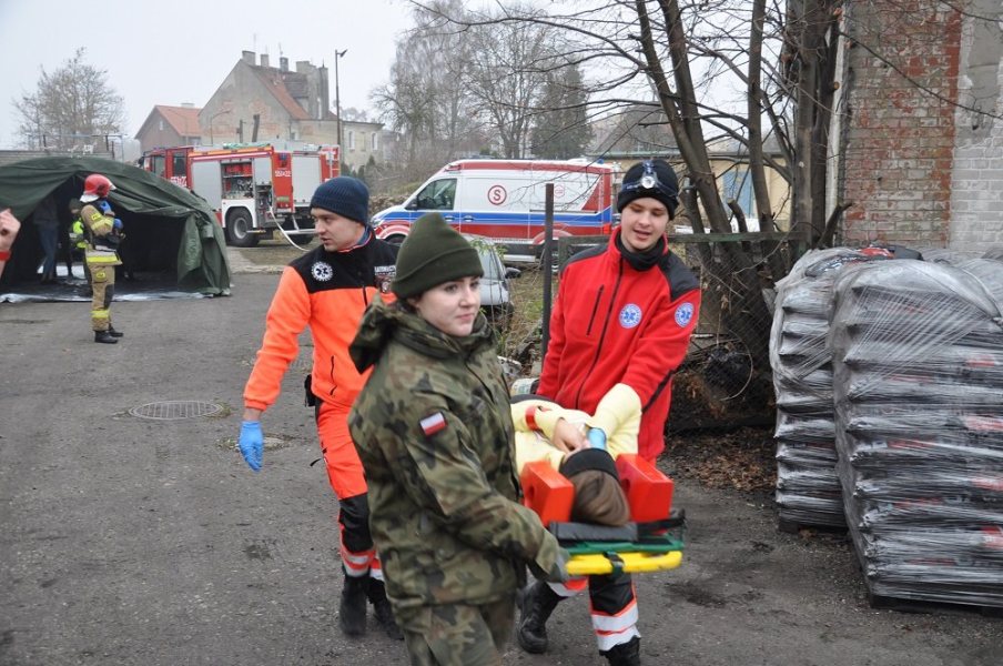 We współpracy z kierownikiem Katedry Ratownictwa Medycznego dr Pawłem Jastrzębskim kadra komendy zorganizowała wspólne ćwiczenia w ramach prowadzenia działań ratunkowych przy dużej liczbie osób poszkodowanych. Scenariusz ćwiczeń obejmował przeprowadzenie działań ratowniczo-gaśniczych w budynku byłej Rzeźni w Szczytnie, w którym podczas dyskoteki doszło do rozszczelnienia butli z gazem i jej wybuchu.