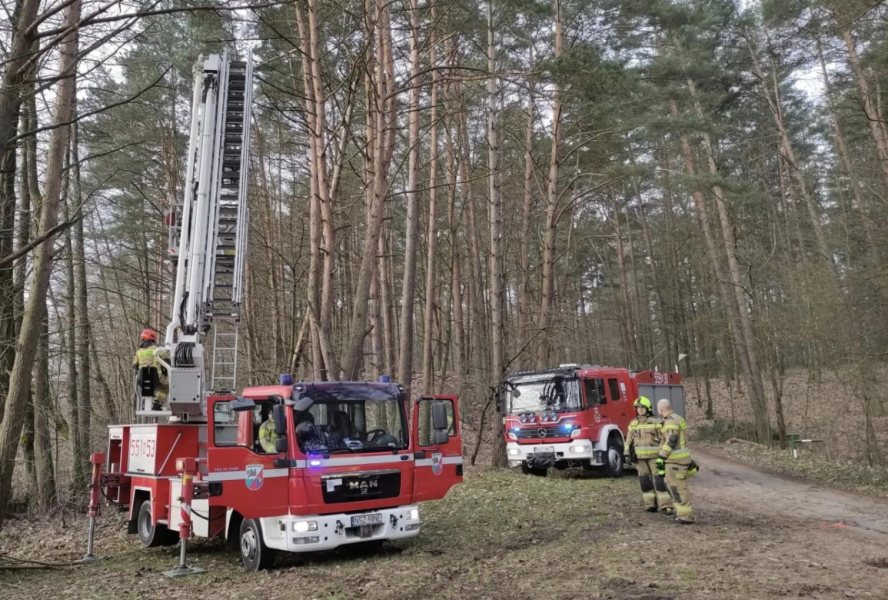 Służby o tym zdarzeniu poinformowała przypadkowa osoba, która zauważyła samochód i młodego mężczyznę, który wisiał już na drzewie kilka metrów nad ziemią.