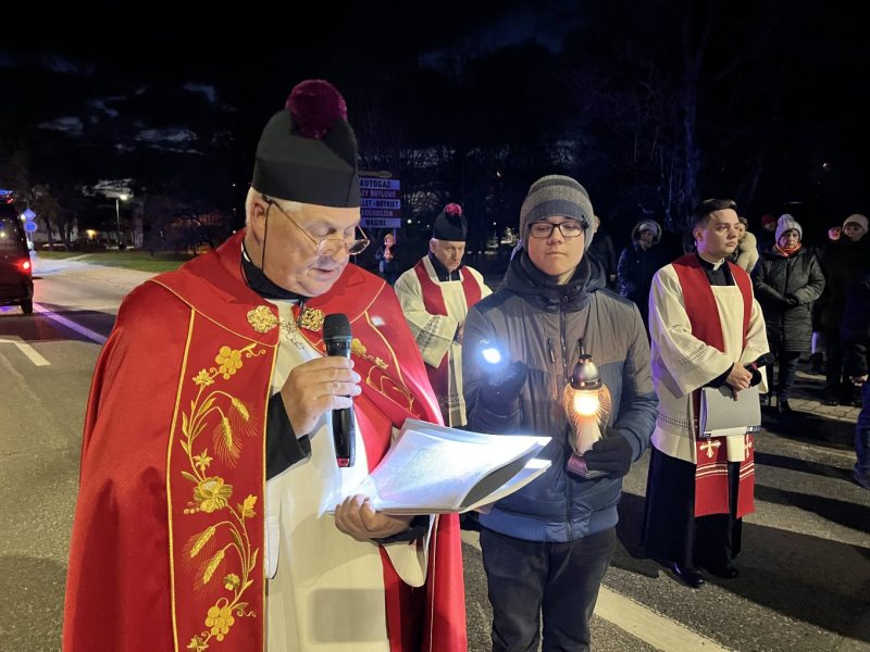 Pątnicy tradycyjnie ruszyli spod kościoła Świętego Brata Alberta (ulica Wileńska 1) i głównymi ulicami Szczytna przeszli pod pomnik papieża Jana Pawła II (ulica Konopnickiej).