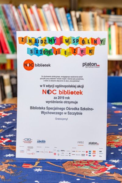 Biblioteka SOSW została doceniona za tegoroczną organizację wydarzenia w ramach akcji „Noc Bibliotek”. Tego dnia, a raczej nocy pojawiły się „Duchy w bibliotece” i zostały wyróżnione. To spora satysfakcja dla organizatorów i uczestników, bo ocenie podane były wydarzenia z ponad 1700 bibliotek w całej Polsce.