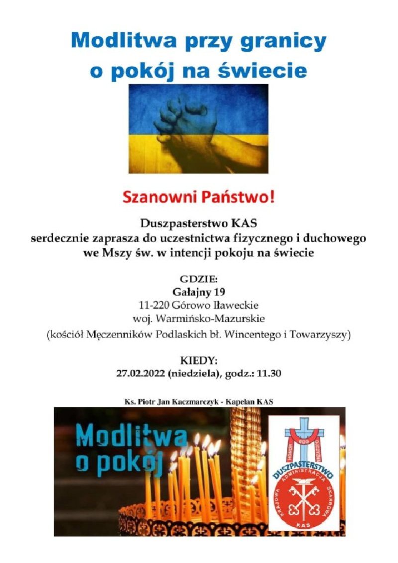 Duszpasterstwo KAS serdecznie zaprasza do uczestnictwa fizycznego i duchowego we Mszy św. w intencji pokoju na świecie