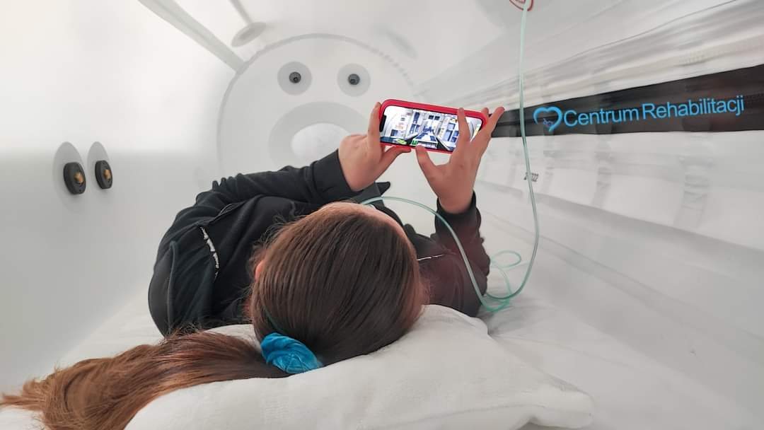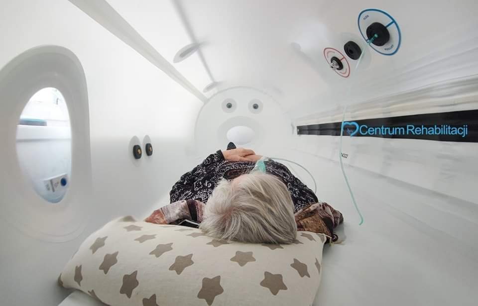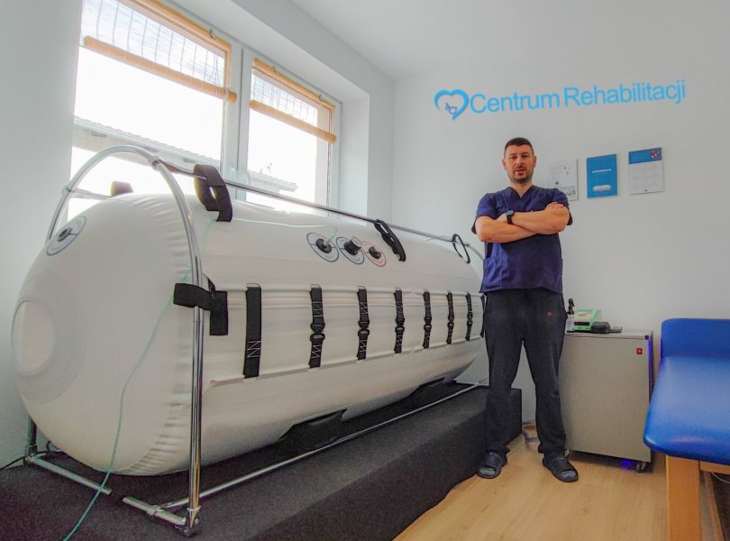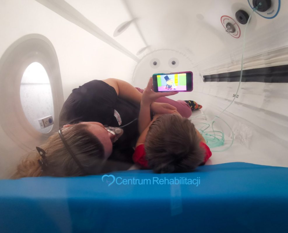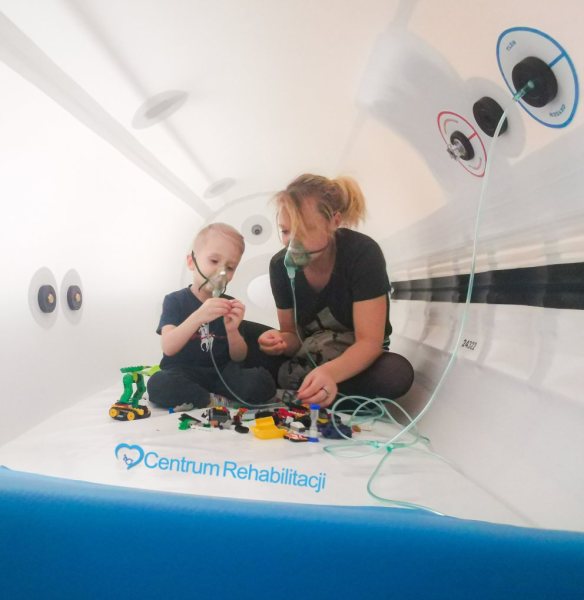 Dla naszych pacjentów zaskakujący jest również fakt, że nasza komora jest taka duża, przestronna i w środku jest tak jasno. Tłumaczymy, że to największa komora na rynku, ma 100 cm średnicy i 220 cm długości, więc można swobodnie poddać się terapii z dzieckiem i mieć wystarczająco dużo miejsca, jak również usiąść w środku i czytać na przykład książkę.