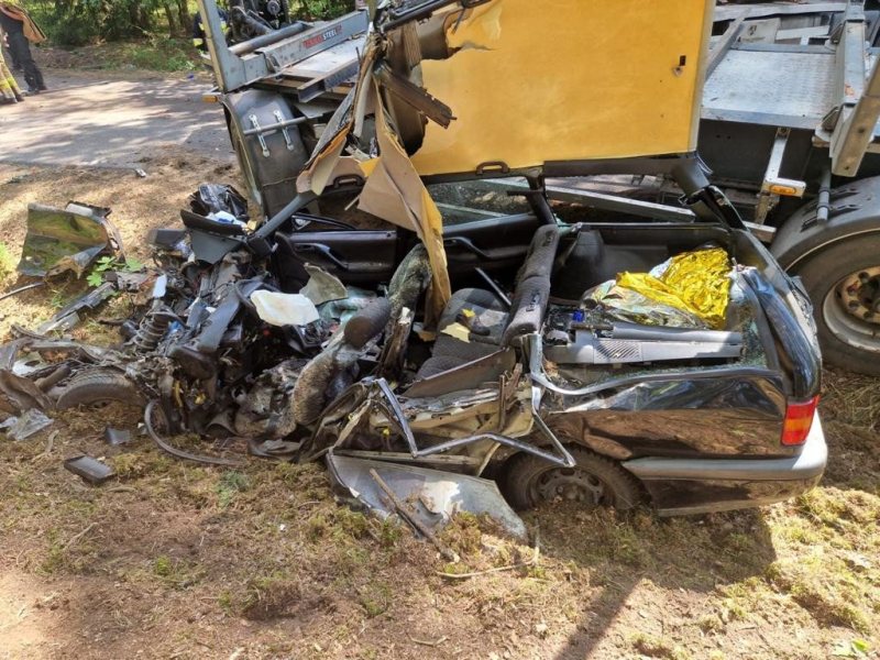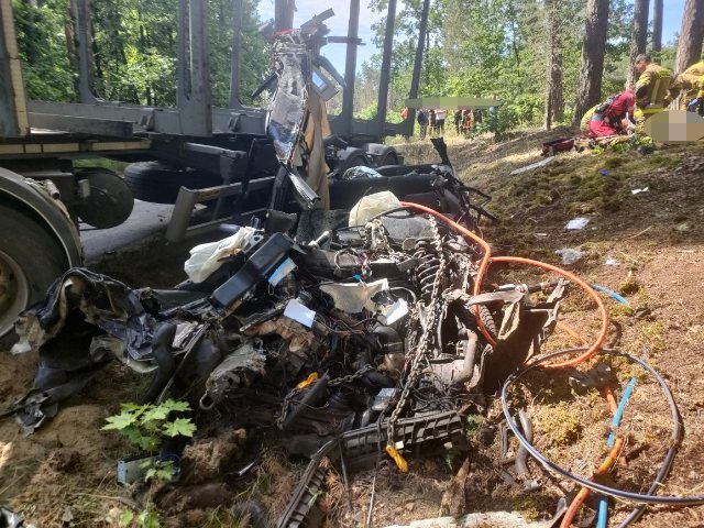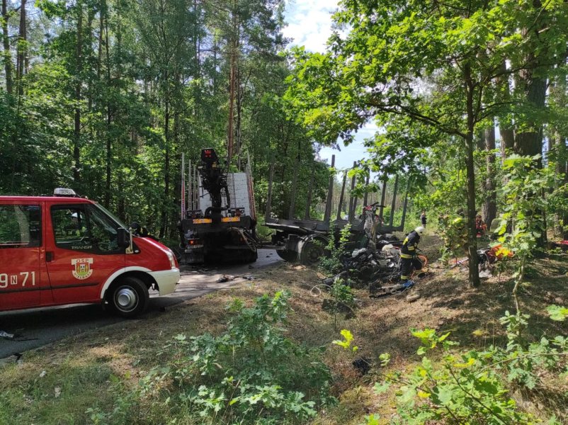 Do potwornego wypadku doszło na drodze Wielbark – Mącice. Samochód osobowy zderzył się z dwoma ciężarówkami dostosowanymi do przewozu drewna z lasu. Z osobówki niewiele zostało. W wypadku ranne zostały trzy osoby. W najpoważniejszym stanie jest kobieta, która kierowała osobówką i 10-letni chłopiec.