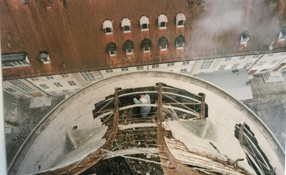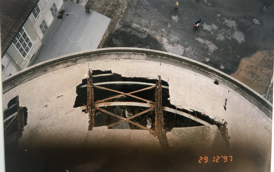 Dokładnie nie pamiętam, ale nabyłem tę wieżę w 1999 roku – mówi Mirosław Demczuk, który nie godzi się z opinią, iż w tym czasie owa wieża była niszczona. Dokumentacja techniczna i zdjęcia obiektu sprzed 20 lat istotnie na to wskazują. Sama wieża istotnie była wówczas w stanie agonalnym. Dziś płaty betonu z dachu nie spadają na głowy i nie zagrażają uczniom, których zresztą dwadzieścia lat temu było dużo więcej. Nie zmienia to faktu, że wieża i okalający ją budynek burzą krew w mieszkańcach miasta. O tym, jak to było i – może – jak to będzie, rozmawiamy z właścicielem Mirosławem Demczukiem.