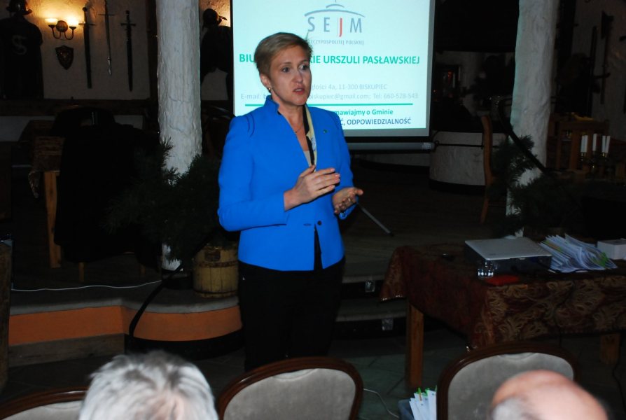 Prelegentami, podobnie jak tydzień wcześniej w Świętajnie, byli: poseł Urszula Pasławska, szef wojewódzkich struktur PSL, osobiście ze Świętajnem przez lata związany Adam Krzyśków oraz były wójt Janusz Pabich. Poseł Pasławska omówiła inicjatywy ustawodawcze autorstwa jej partii. Pokrótce uzasadniła m.in. potrzebę uhonorowania strażaków ochotników dodatkowymi 20 złotymi do przyszłych emerytur za każdy rok czynnej służby strażackiej czy też likwidację obciążenia podatkiem wypłacanych emerytur – wszystkich, nie tylko strażackich. Argumentowała też zasadność zmian, które miałyby towarzyszyć wypłacanemu dodatkowi 500+.