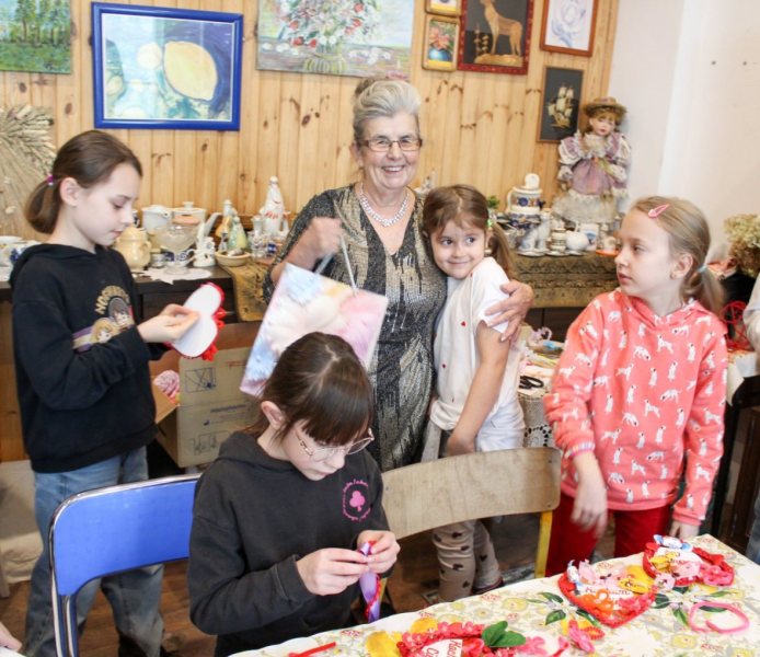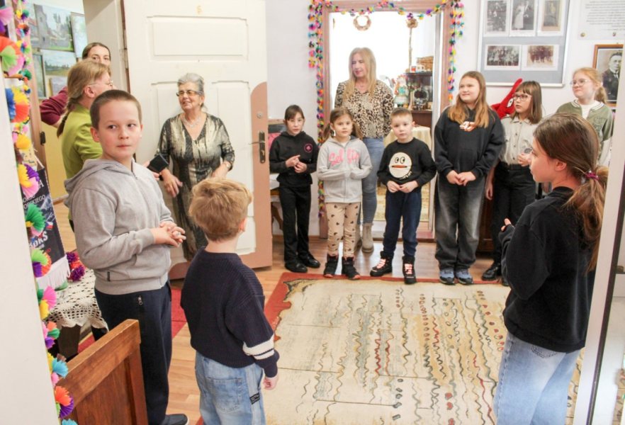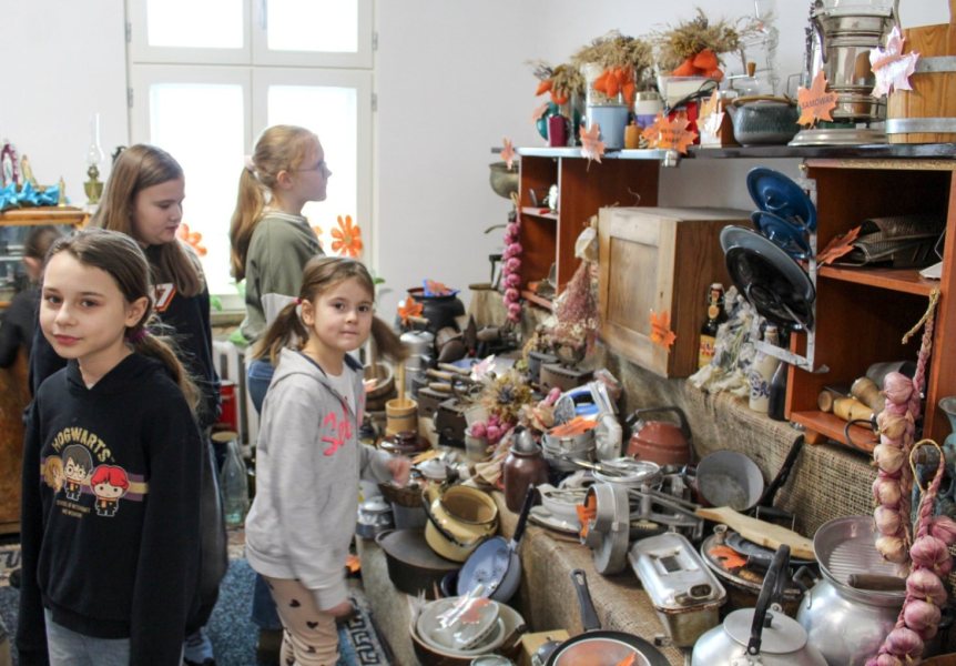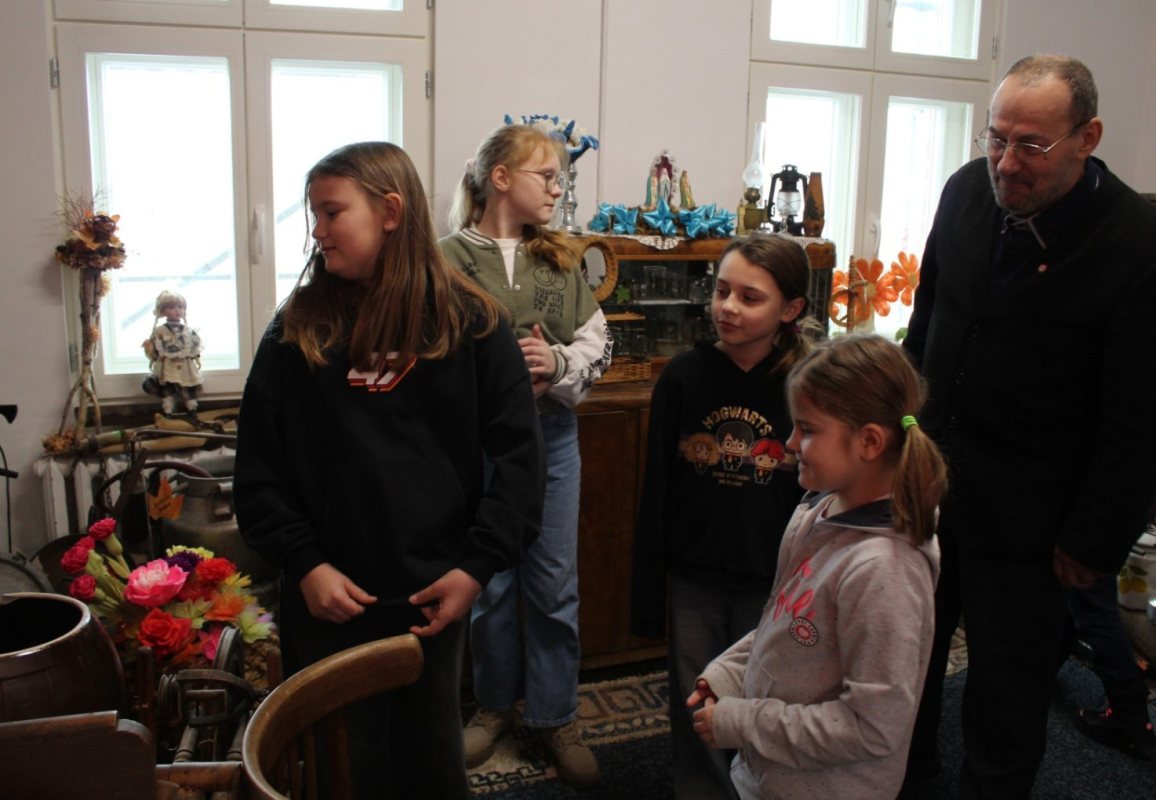Po części warsztatowej przyszedł czas na zwiedzanie. Po Izbie Pamięci oprowadzał Włodzimierz Budny, prezentując zbiory i opowiadając o przedmiotach związanych z codziennym życiem dawnych mieszkańców regionu. Dzieci zadawały pytania, oglądały eksponaty i poznawały historie zapisane w przedmiotach.