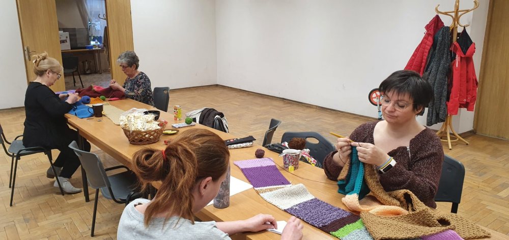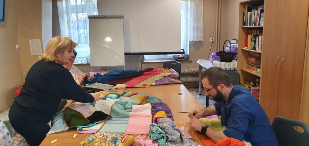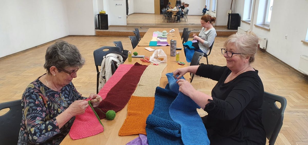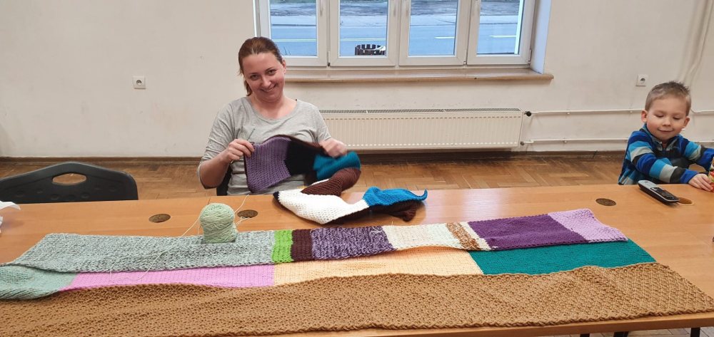 - Za nami dwa dziergane poniedziałkowe popołudnia – mówi z uśmiechem Adam Cudak, dyrektor GOK w Jedwabnie. - Gotowe pledy pojechały do Domu Dziecka na ul. Korczaka w Olsztynie, w którym będą przygotowane miejsca noclegowe dla osób z Ukrainy. Nie oznacza to, że kończymy przygodę z dzierganiem, wręcz przeciwnie dopiero się rozkręcamy – dodaje. - Zapraszamy na kolejne spotkanie tradycyjnie już w poniedziałek o godz. 17:00 w GOK -u.