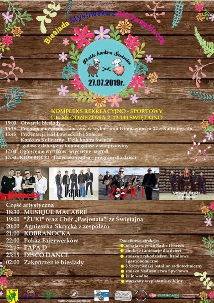 Pierwszym konsultantem projektu był Krzysztof Krasula nadleśniczy ze Spychowa. Zadeklarował pomoc i wsparcie. Dofinansowanie z WOŚiGW w Olsztynie obligowało do włączenia w wydarzenie elementów ekologicznych, a jego nazwę: „Biesiada myśliwska z EKOwspólnotą” wymyśliła Katarzyna Gronowska. „Dzik kontra świnia” - to już efekt burzy mózgów.