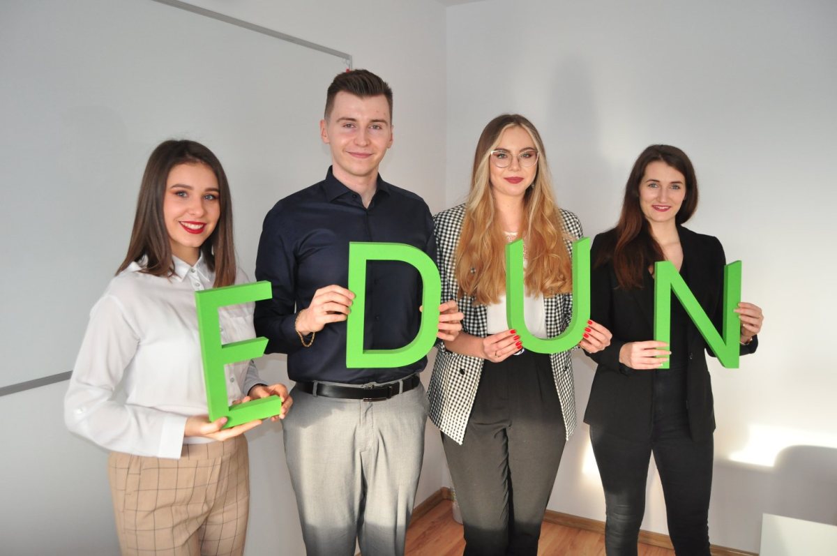 Część zespołu Edun Szczytno Korepetycje: Aleksandra Mucha, Sebastian Kucharski, Patrycja Szczerbecka, Daria Śliwa.