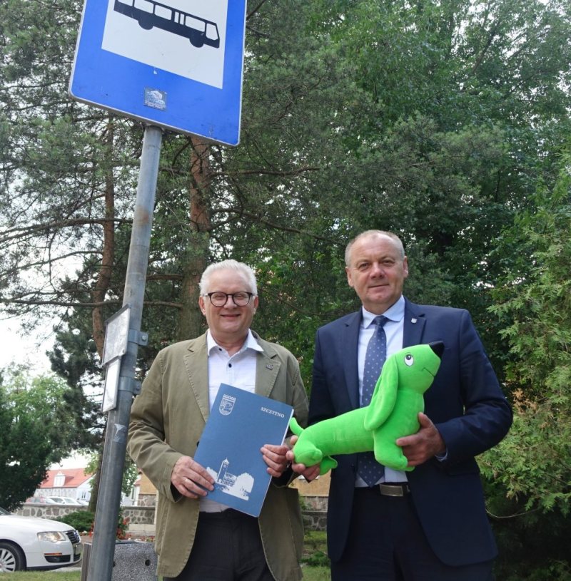 Na zdjęciu przedstawiciel firmy Solaris i burmistrz Szczytna Krzysztof Mańkowski.