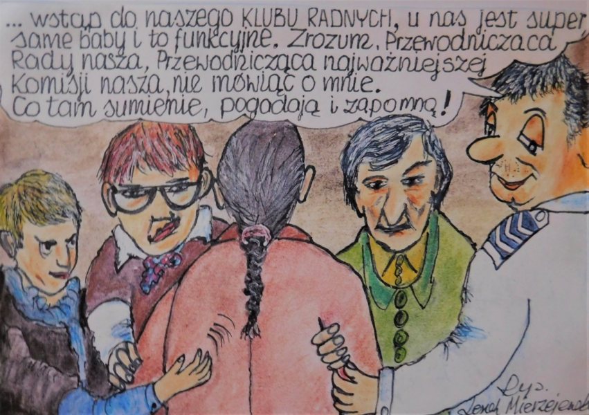 Cała jego rodzina, od tego czasu krzywo na mnie patrzy, pomimo że ten humor kogoś innego dotyczył. Inny z kolegów niepotrzebnie najeżył się dopasowując swoją posturę do karykatury z odznaczeniami. Któryś tam rysunek zawadzał kolejnemu koledze, dopiero gdy mu, nie bez trudu, wyjaśniłem, że to przecież humor - ochłonął. Jeden z moich przyjaciół, odwieczny radny, gdy go kilka lat temu narysowałem z innymi radnymi z klubu, to nie wiem dlaczego karykaturę ukrył głęboko w szufladzie.