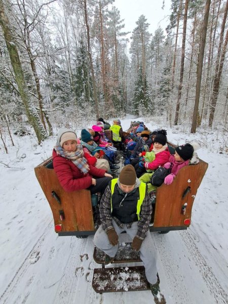Kolejny dzień ferii w Nadleśnictwie Spychowo za nami, a z nim kolejne niesamowite atrakcje. Tym razem leśnicy ze Spychowa zabrali wszystkich feriowiczów na wspólną wyprawę, która połączyła w sobie przejazd pociągiem, jazdę konno i piesze wędrówki.