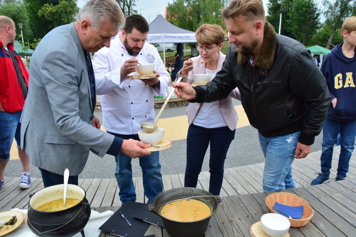 Mistrz kuchni przewodniczył również jury festiwalowego konkursu na najlepszą polewkę. Laur zwycięstwa trafił do kucharzy z Targowskiego Dworu, którzy zaserwowali polewkę krem z kurek z jagodami. Drugie miejsce zdobyła polewka na piwie pszenicznym Julii Bartnikowskiej. Na najniższym stopniu podium stanęło KGW Lipowa Góra Wschodnia za polewkę, a jakże by inaczej - na lipie. Tradycyjnych specjałów nie zabrakło również na stoisku sołectwa Dźwierzuty, które od samego początku włącza się w organizację imprezy.
