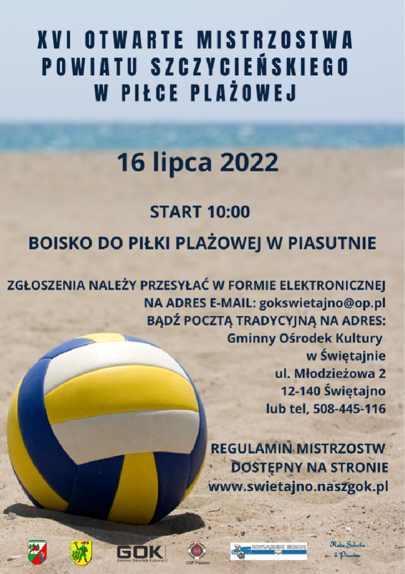 Gminny Ośrodek Kultury w Świętajnie zaprasza na XVI Otwarte Mistrzostwa Powiatu Szczycieńskiego w Piłce Plażowej. Właśnie ruszyły zapisy do turnieju. Zawody odbędą się w sobotę, 16 lipca. Start godz. 10.