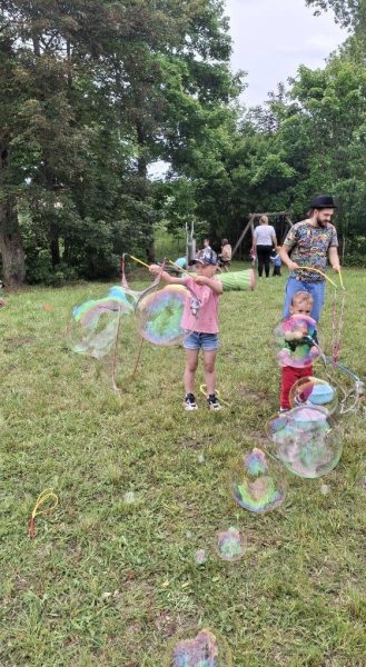 Dla dzieci przygotowano mnóstwo atrakcji: dmuchańce, gry, zabawy, a także wspólne ognisko i lody rzemieślnicze. Nie zabrakło też pysznych ciast i słodkich przekąsek, które przygotowały mieszkanki sołectwa. Dla każdego znalazło się coś smacznego – i dla maluchów, i dla dorosłych.