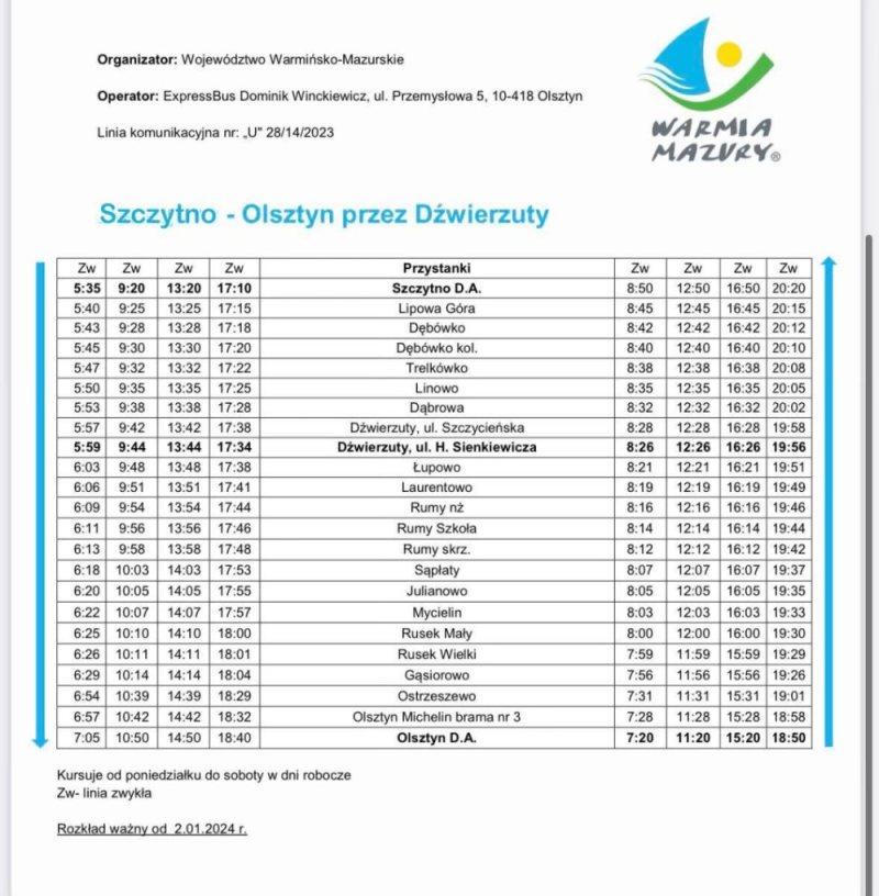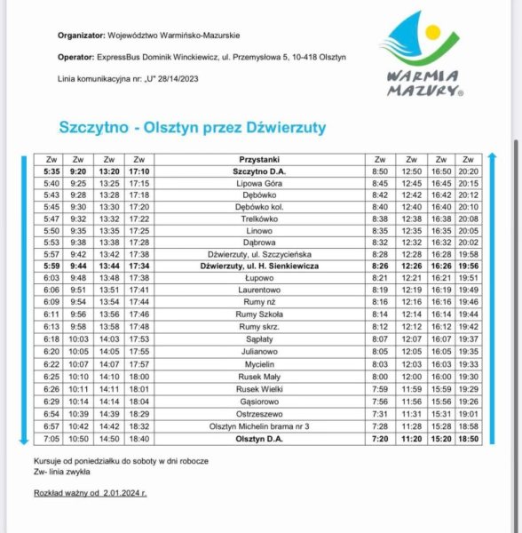 Od 2 stycznia ruszyły kolejne połączenia autobusowe między Szczytnem a Olsztynem przez Dźwierzuty. To efekt wsparcia, również ekonomicznego, Samorządu Województwa.